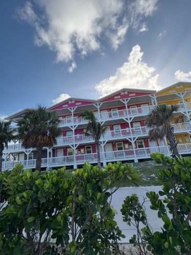Next let’s talk about MSC Cruises’ private island, Ocean Cay. This private island was truly stunning, with sidewalks leading from the port to the beaches and colorful buildings lining the streets.