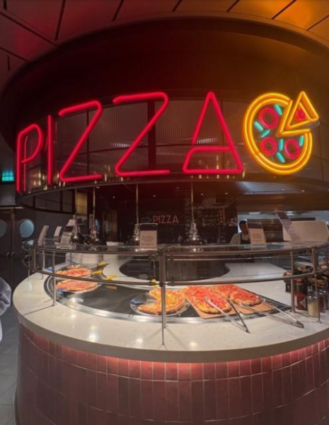 There were also plenty of complimentary food locations throughout the ship. Take Luna Park Pizza & Burger, for example. This complimentary spot, located in the World Galleria, offered pizza, chicken tenders, burgers and a variety of small desserts. The best part? It’s open until late – perfect for any late-night cravings.